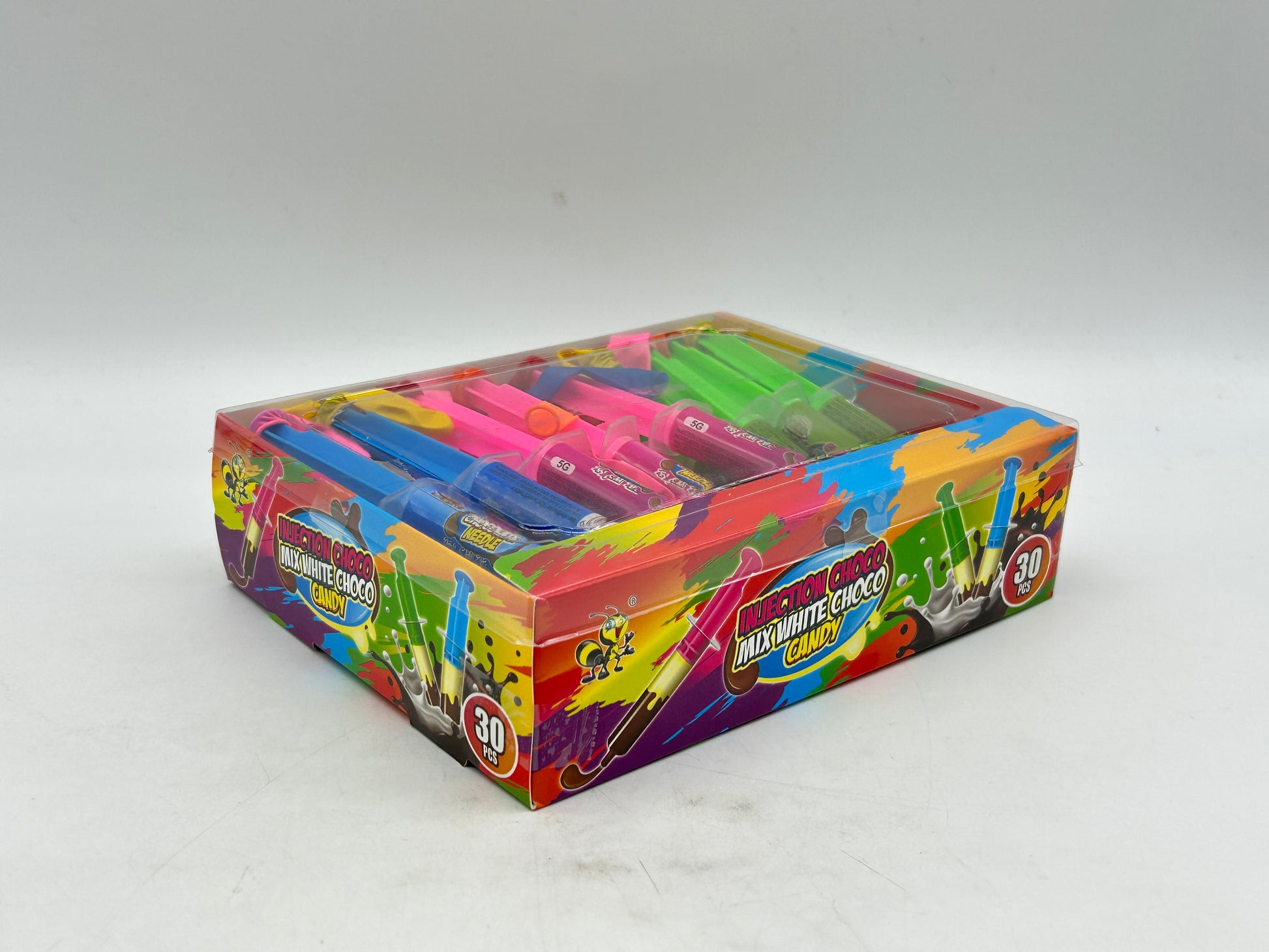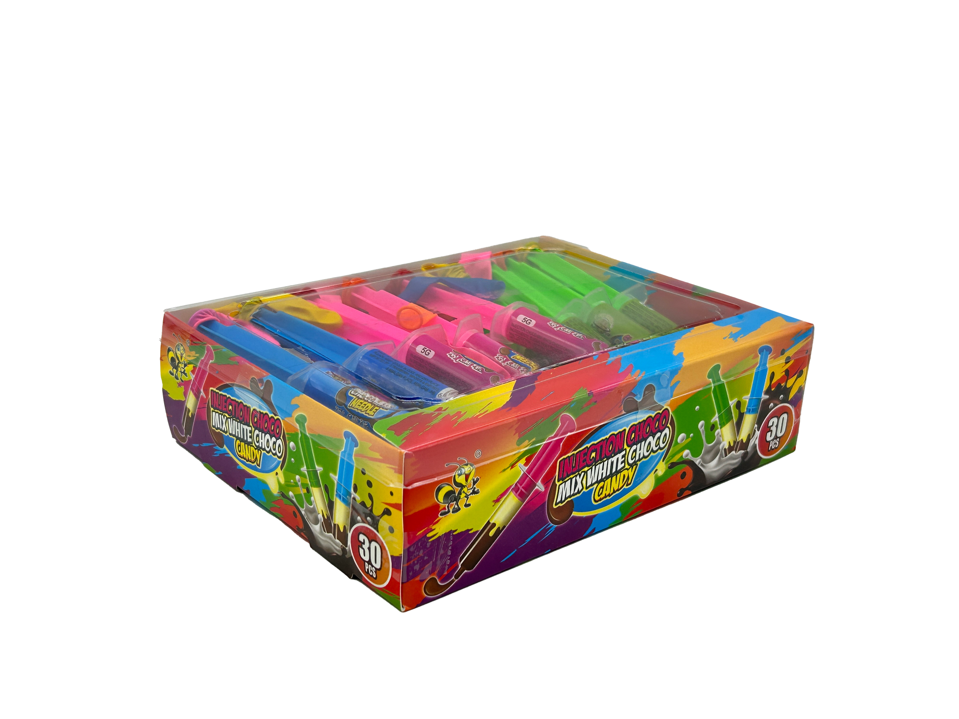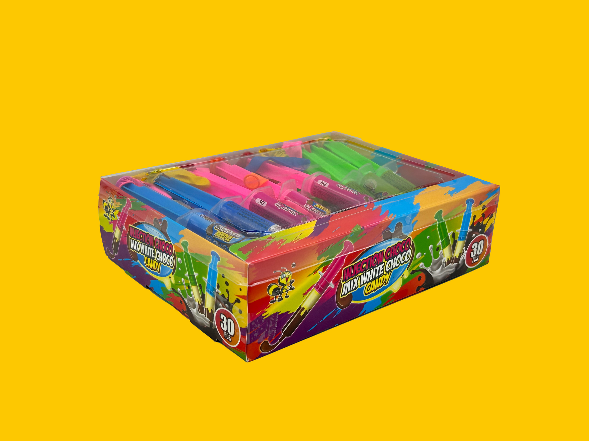 Um chocolate que injeta diversão! O Injection Choco simula uma seringa recheada de sabor, ideal para brincar e saborear ao mesmo tempo. Uma ideia criativa que conquista pontos de venda pela originalidade.